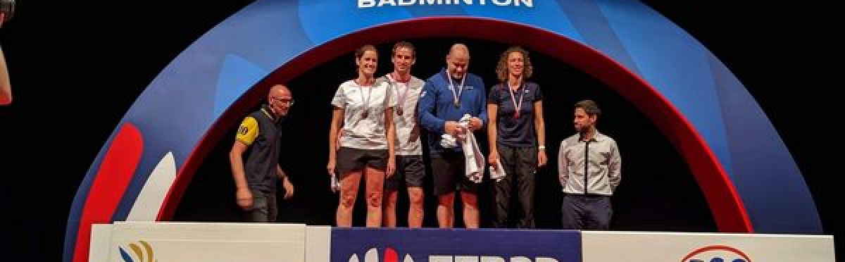 en Double mixte V2, battus en finale (15-21 21-07 21-04) par Hélène DIJOUX (RMB) et Marc DE LA GIRODAY (BBC)